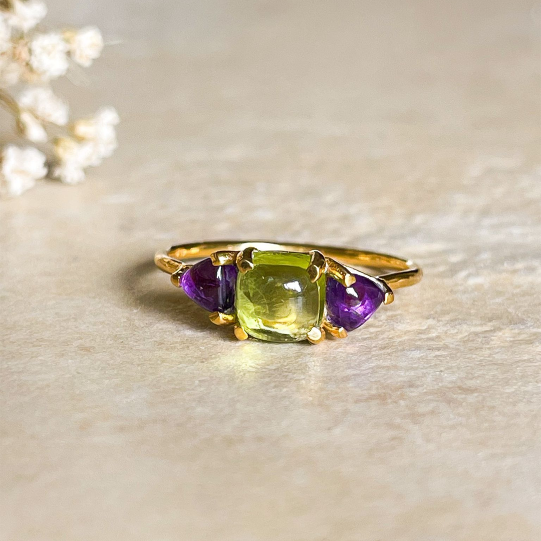 14K Gold Plated on Solid Sterling Natural Peridot and Natural Amethyst
