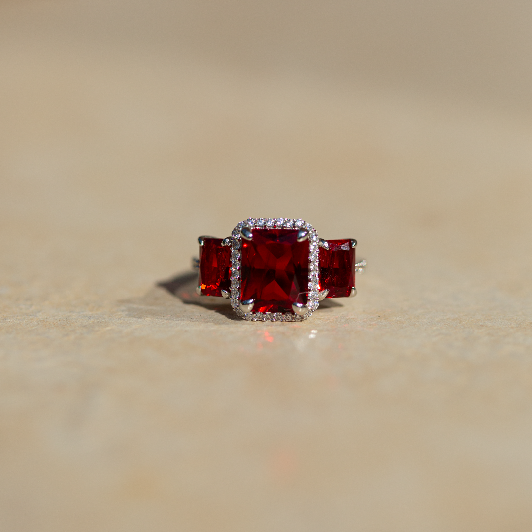 Cubic Zirconia Red | Solid 925 Sterling Silver Ring