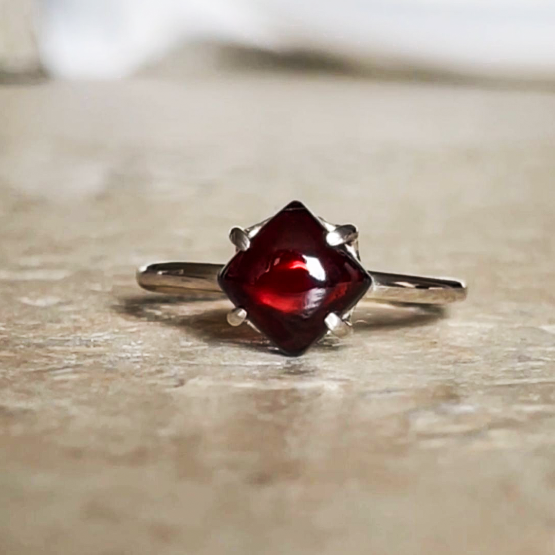 Natural Garnet Stone On 925 Solid Sterling Silver Ring
