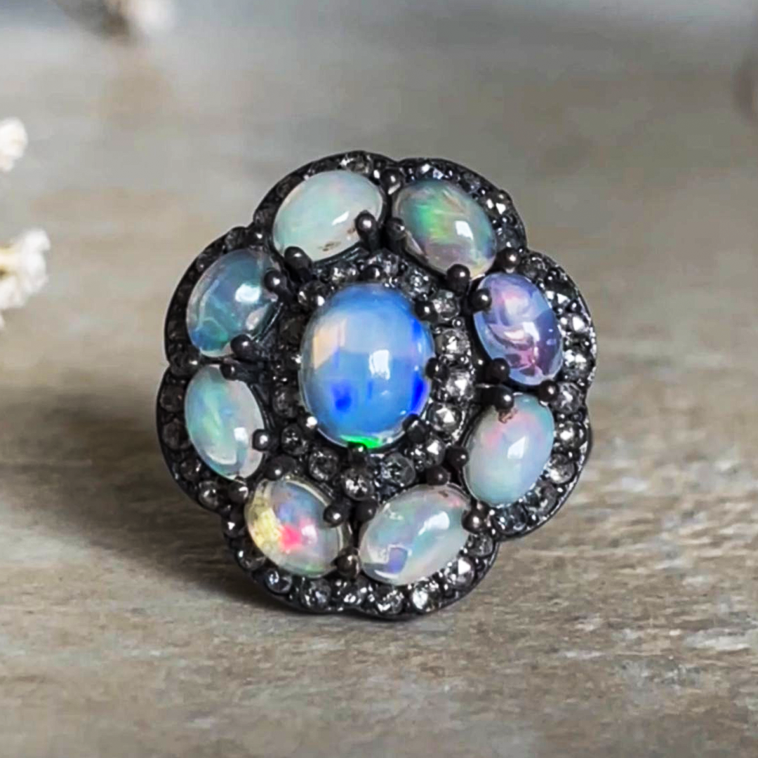 * Stone: Natural Opal Stone With Diamonds/Black Rhodium