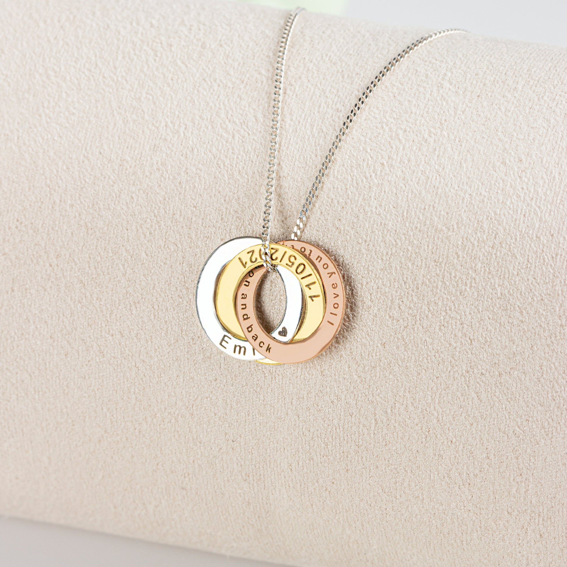 • Perfect Family Necklace, personalised for mum with children's names engraved on interlocking Russian rings or a lovely jewellery gift for grandma to cherish with grandkids names . Perfect present for your mum on Mother's Day