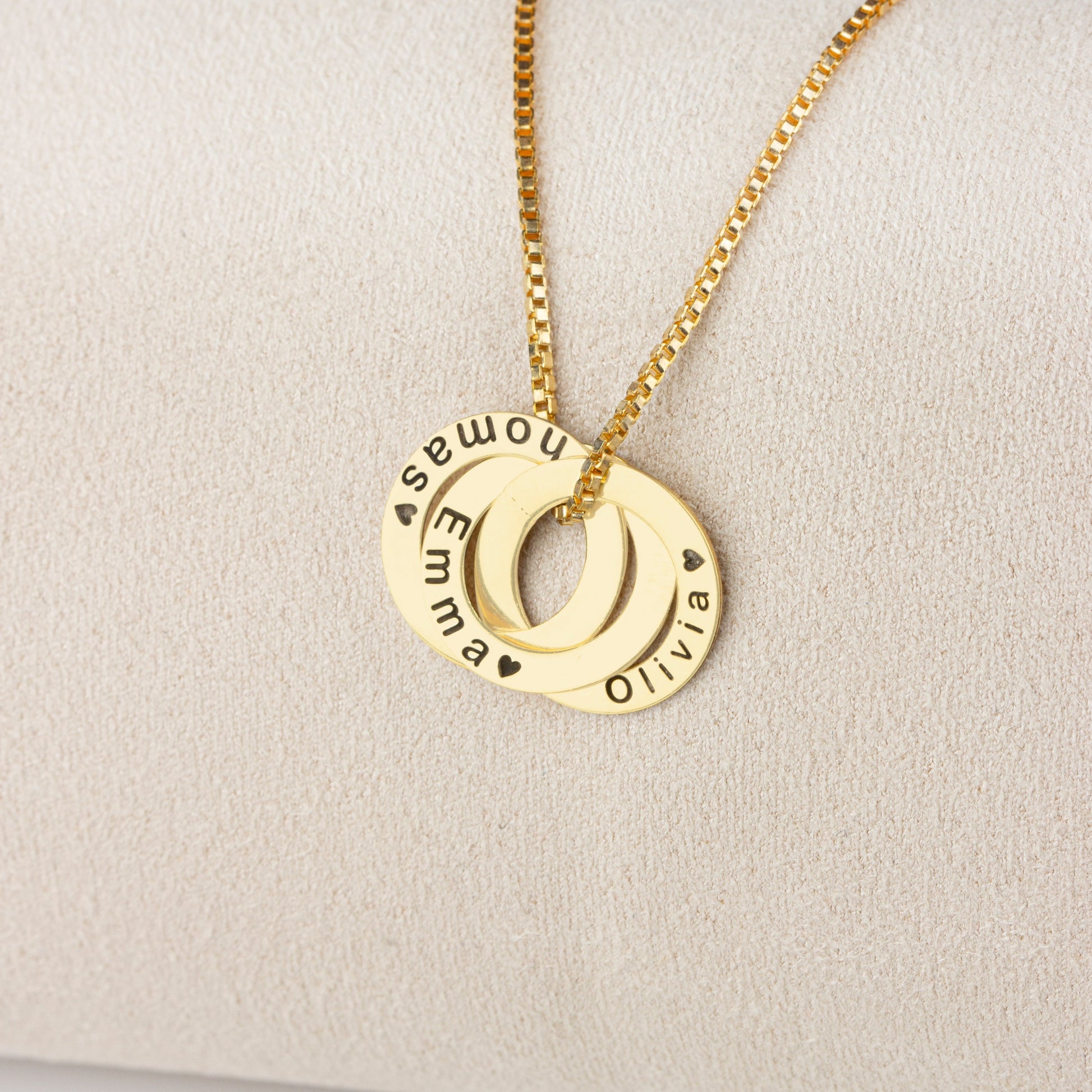 Personalised Russian Ring Necklace | Name Engraved Family Necklace | Personalised Jewellery | Mom Necklace With Kids Names |Interlock Circle